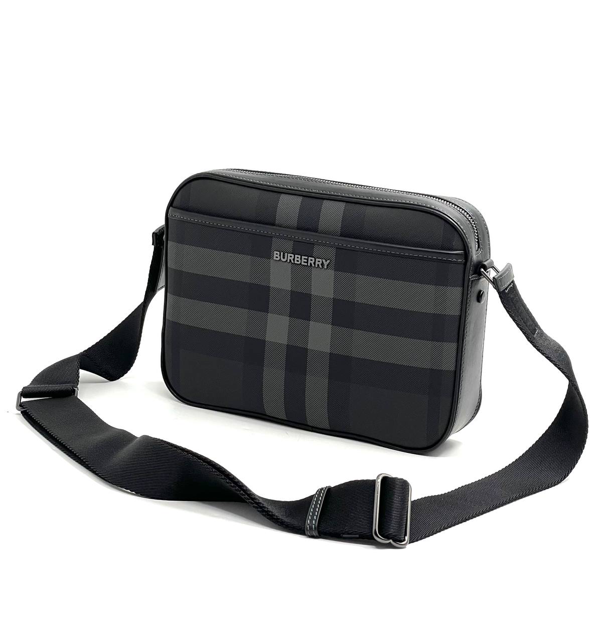 BURBERRY мессенджер маленький прямоугольный горизонтальный с доп карманом на магните канва клетка серый