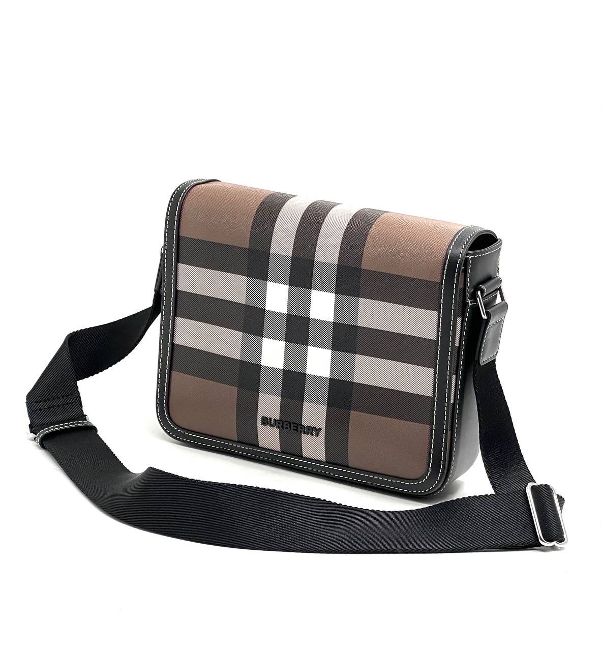 BURBERRY мессенджер с клапаном на магнитах из канвы в клетку серого цвета с кожаной отделкой по краю