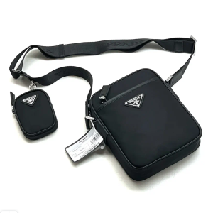 PRADA мессенджер нейлон черный, с подвесным карманом