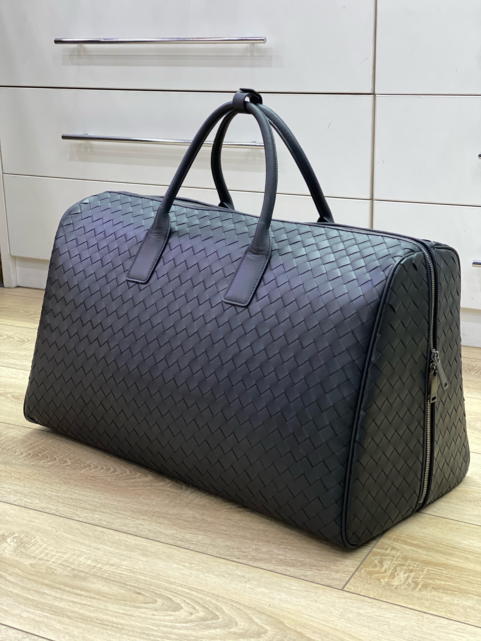 BV дорожная сумка 60 см крупное плетение теленок черная c боковыми карманами и дополнительным кошельком