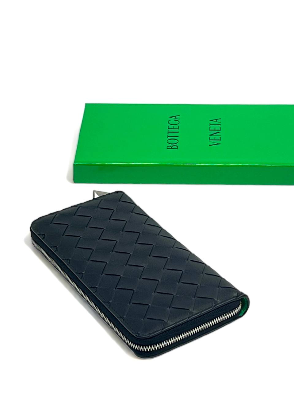 BV кошелек маленький черный зеленый внутри в крупном плетении