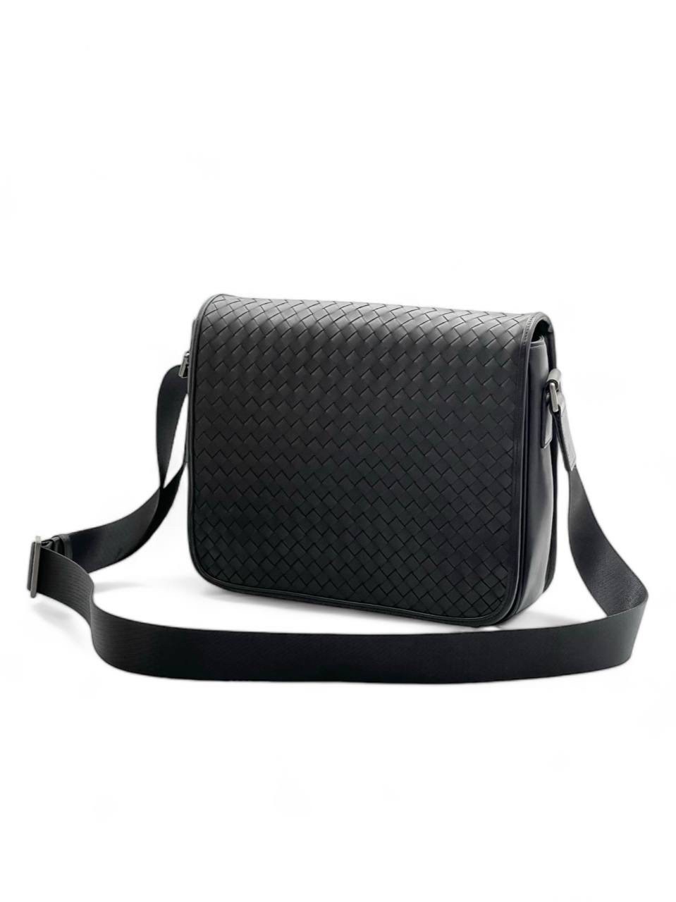 BV мессенджер теленок большой с карманом на молнии спереди черный с узорным плетением