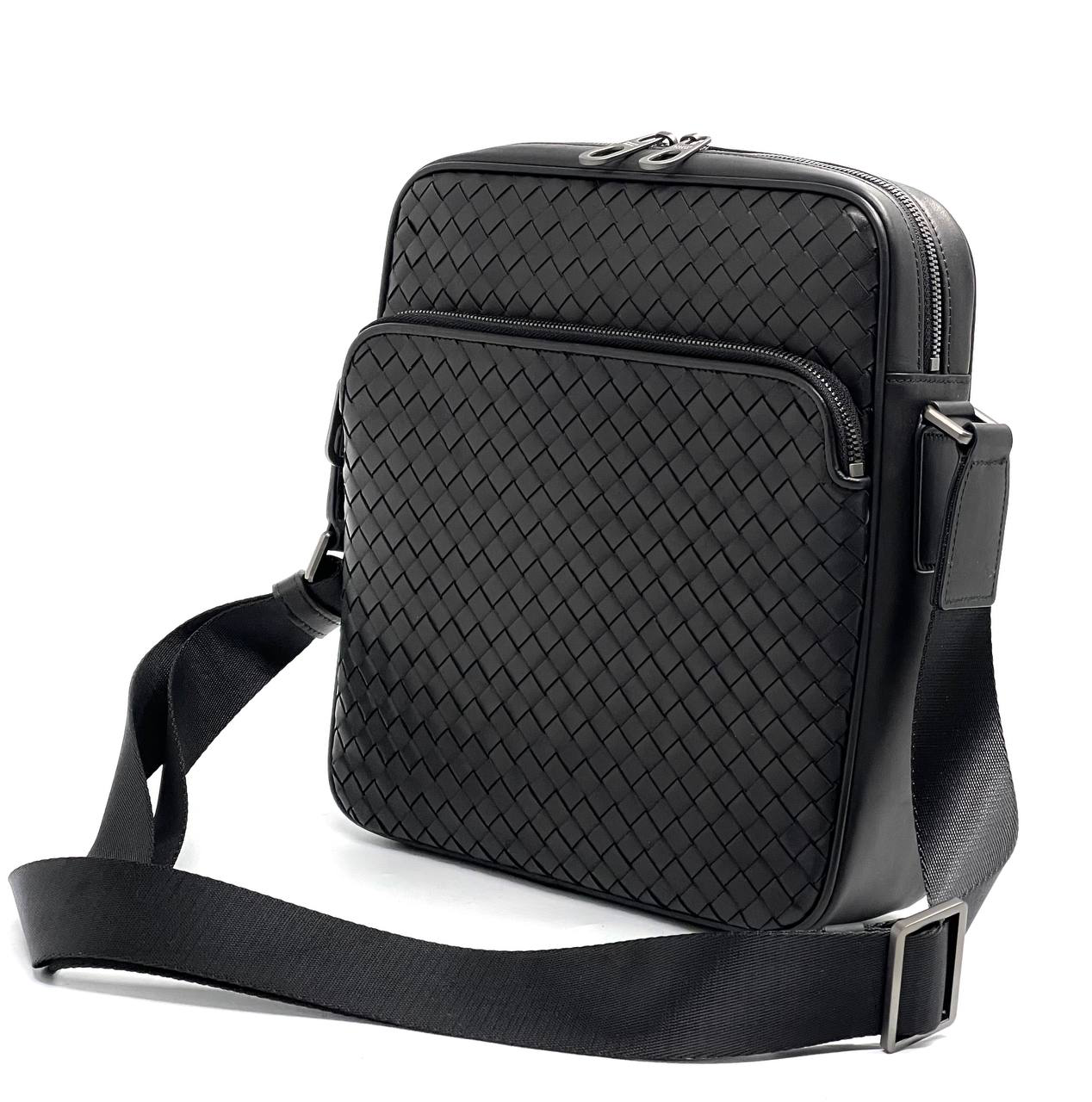 BV мессенджер трансформер крупное плетение телячья кожа черного цвета два отделения на молнии