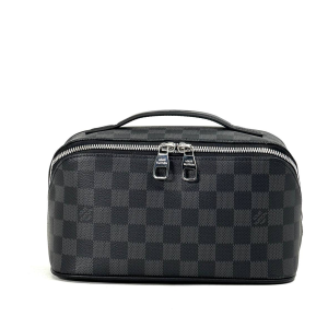 LV несессер круговая молния ручка сбоку канва серая шашка