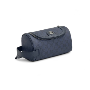 GUCCI несессер темно-синий в монограмму на круговой молнии с ручкой