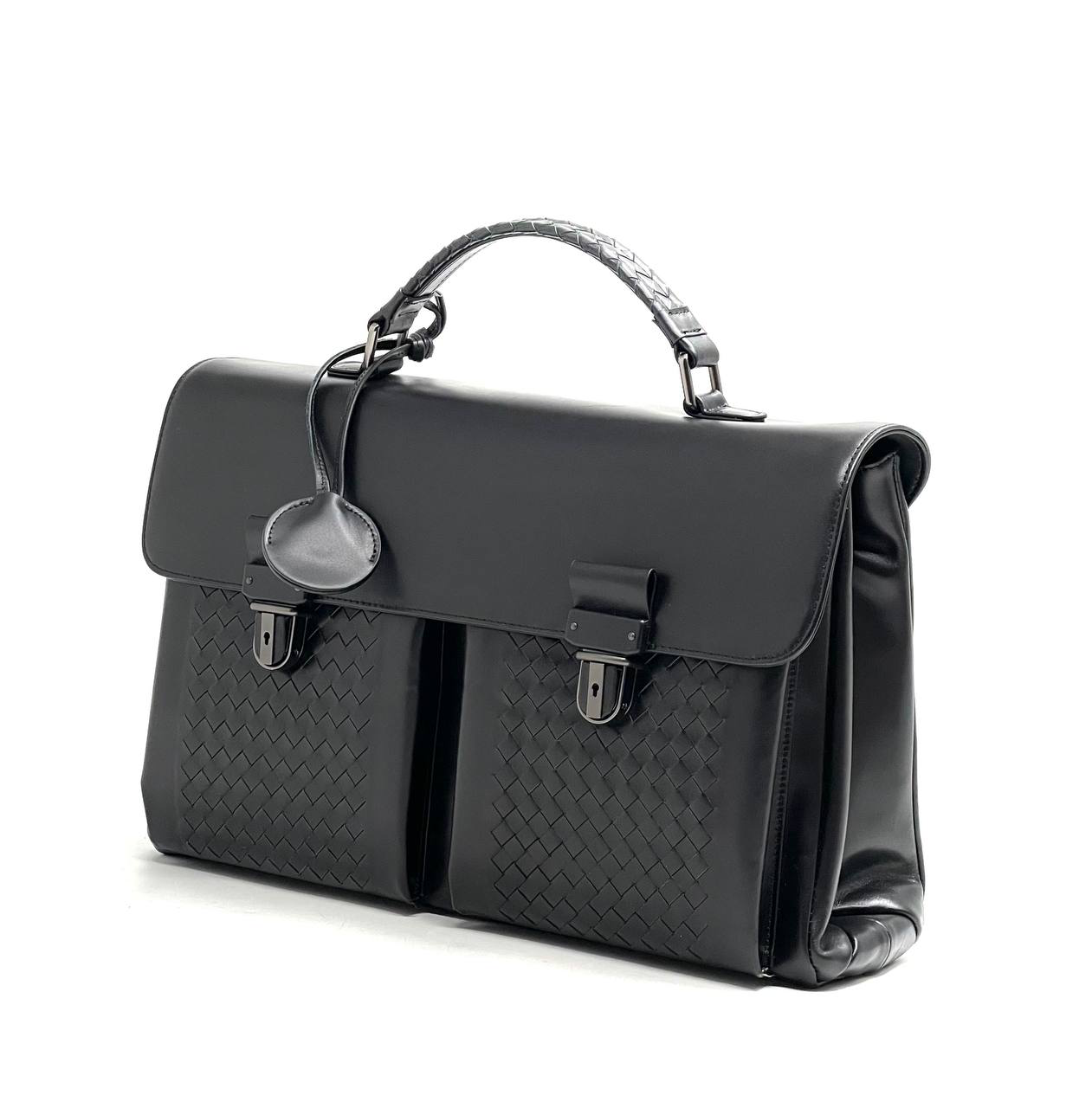 BV портфель широкий из черной кожи теленка в новом плетении с открытым карманом снаружи