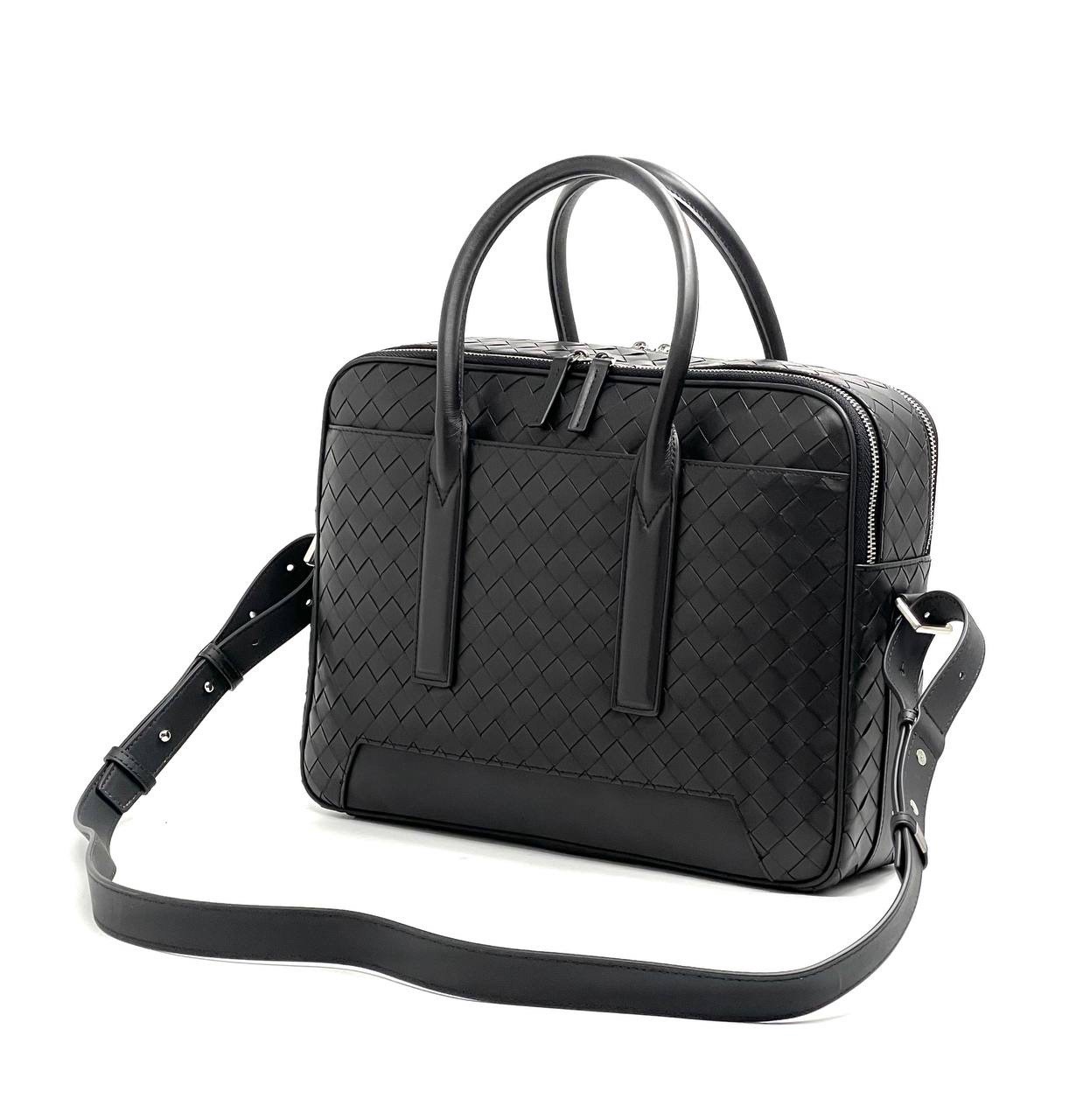BV портфель широкий из черной кожи теленка в новом плетении с открытым карманом снаружи