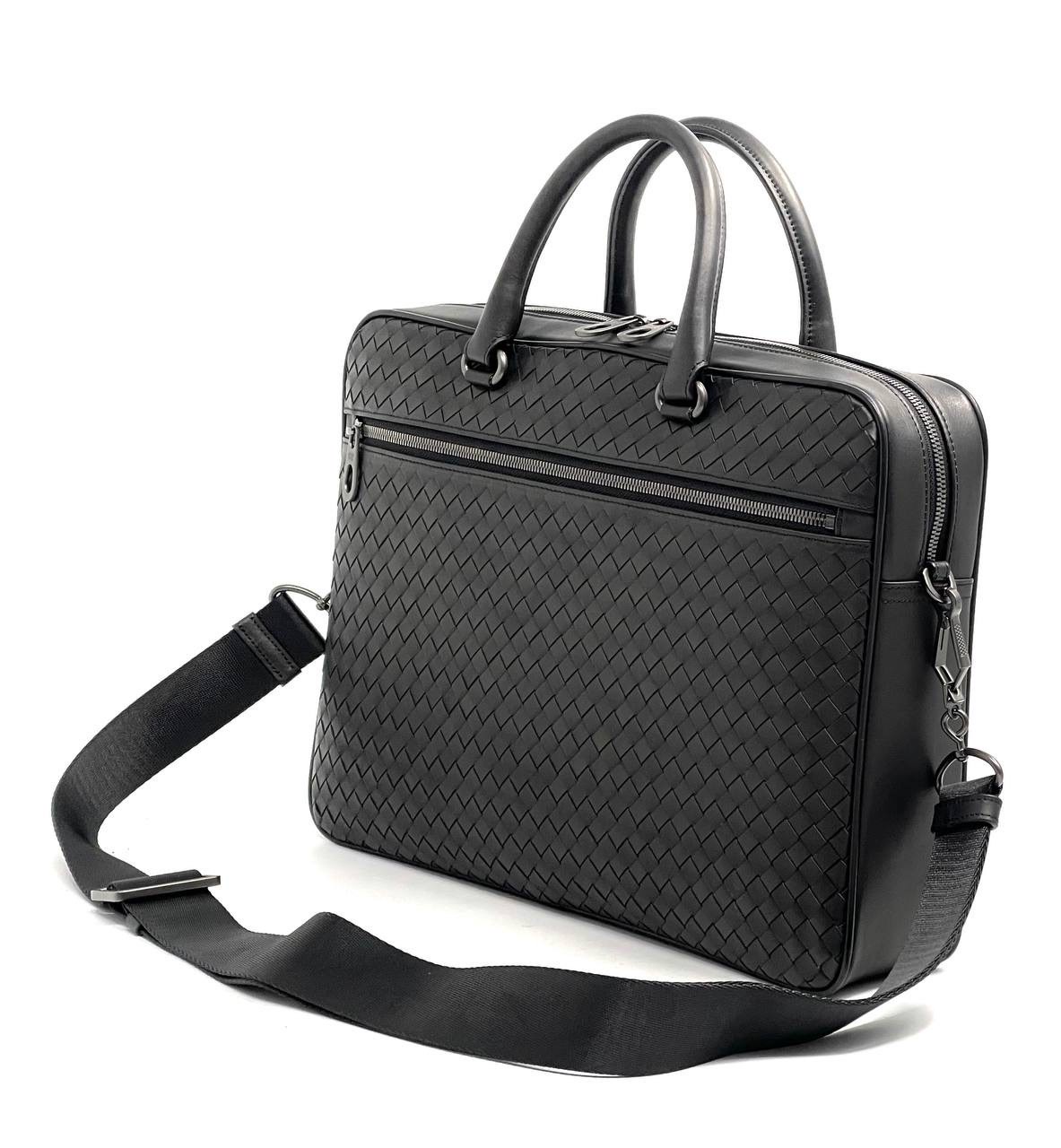 BV портфель теленок на двух молниях в новом крупном плетении черный