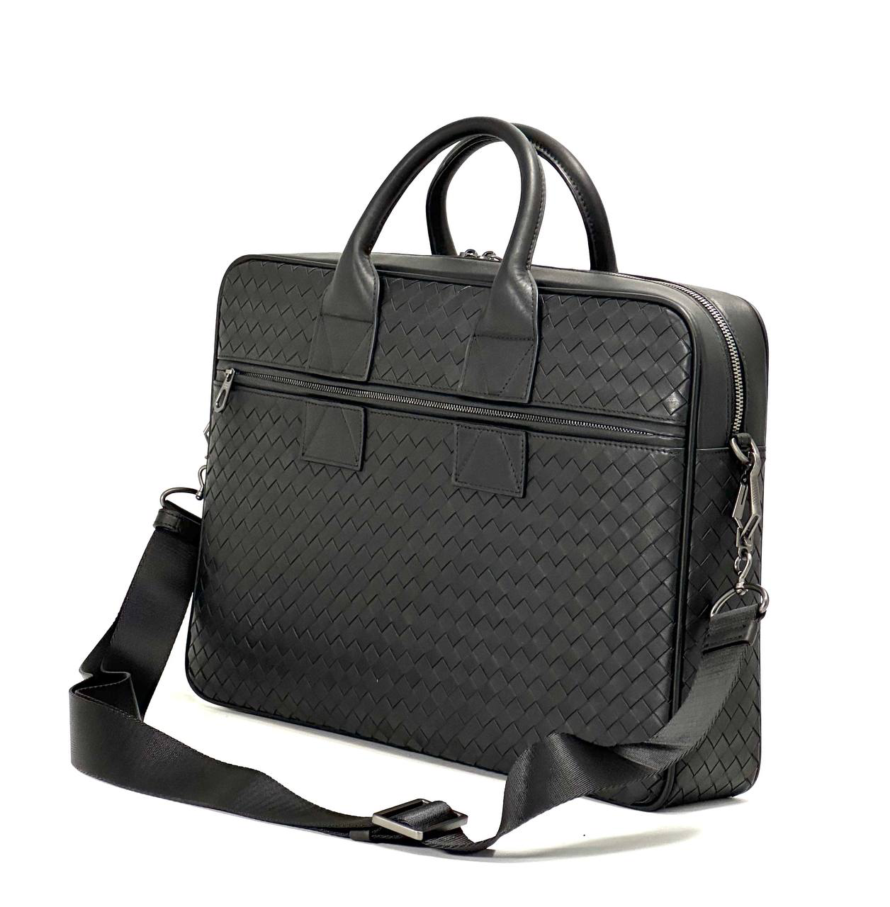 BV портфель широкий из черной кожи теленка в новом плетении с открытым карманом снаружи