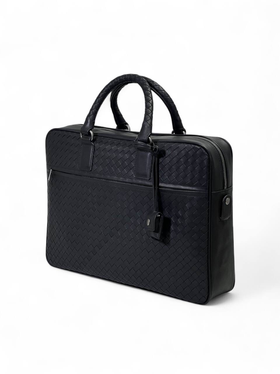BV портфель широкий из черной кожи теленка в новом плетении с открытым карманом снаружи