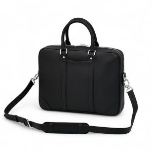 LV портфель с ремнем черный кожа тайга кармашек сбоку между кожаными ремнями