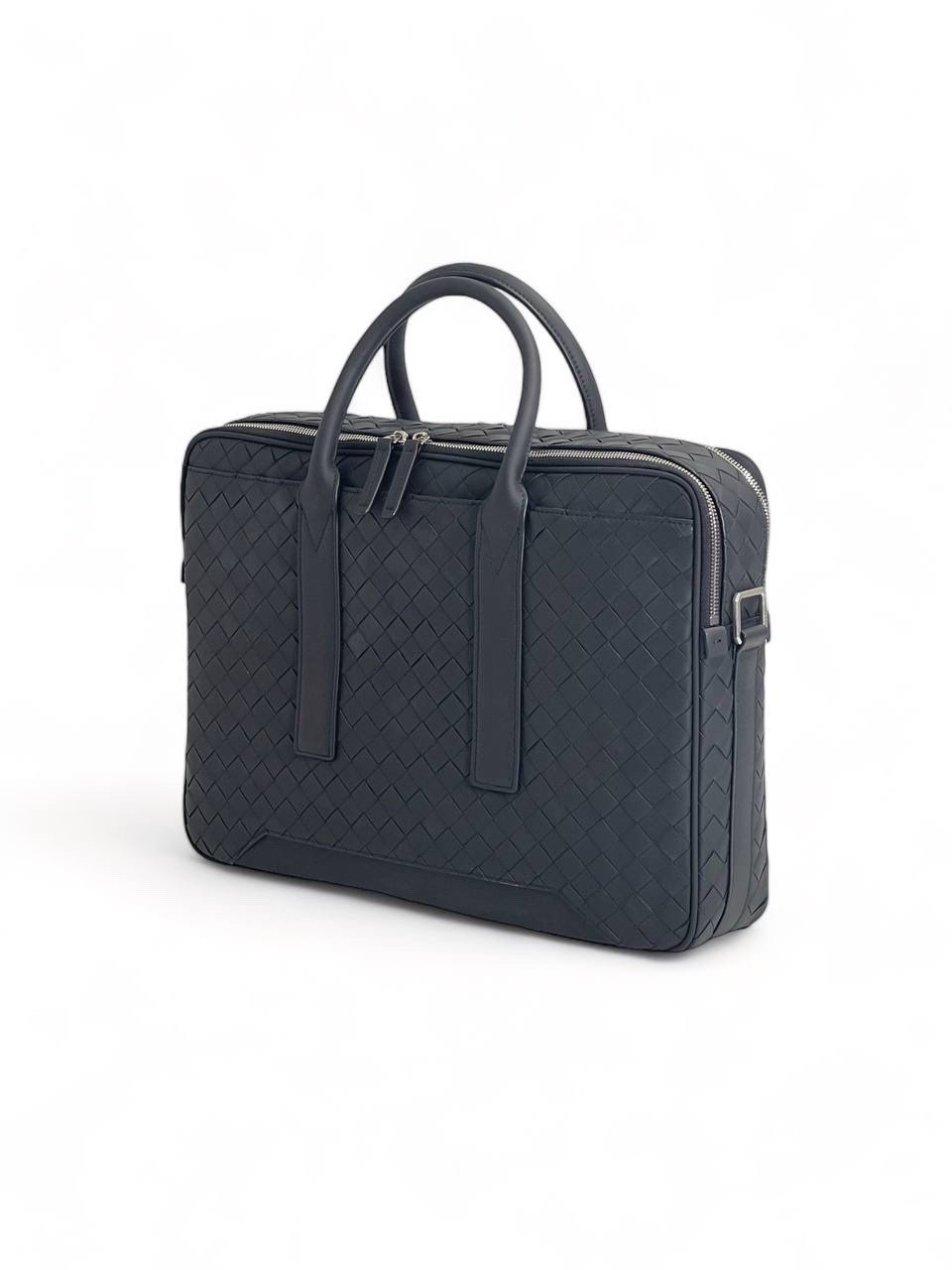BV портфель теленок на двух молниях в новом крупном плетении черный