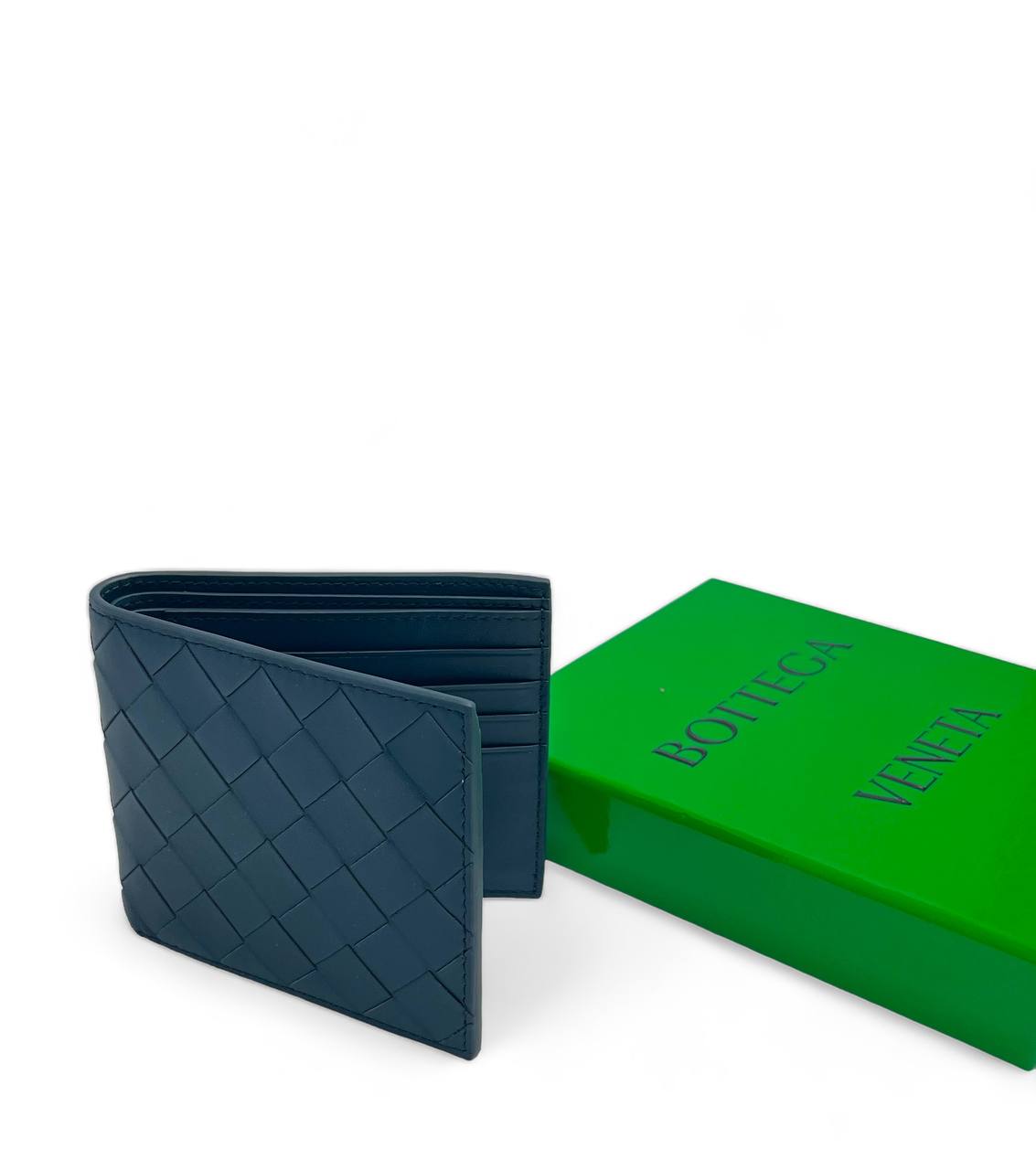 BV портмоне синие крупное новое плетение теленок