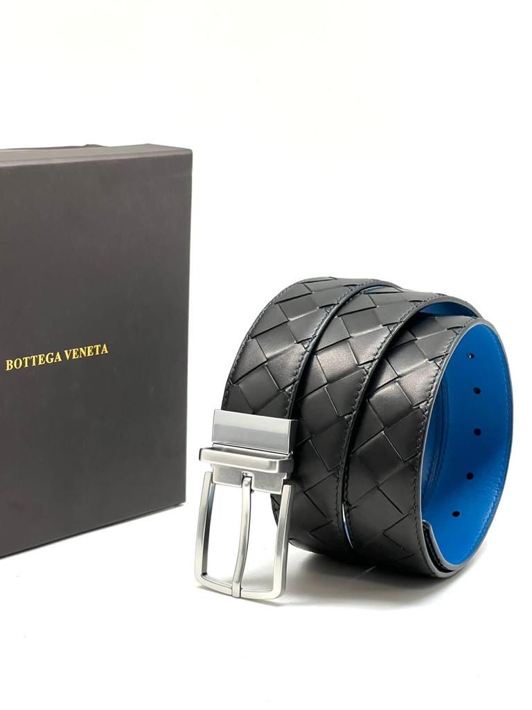 BV ремень брючный широкое плетение двухсторонний черно-синий