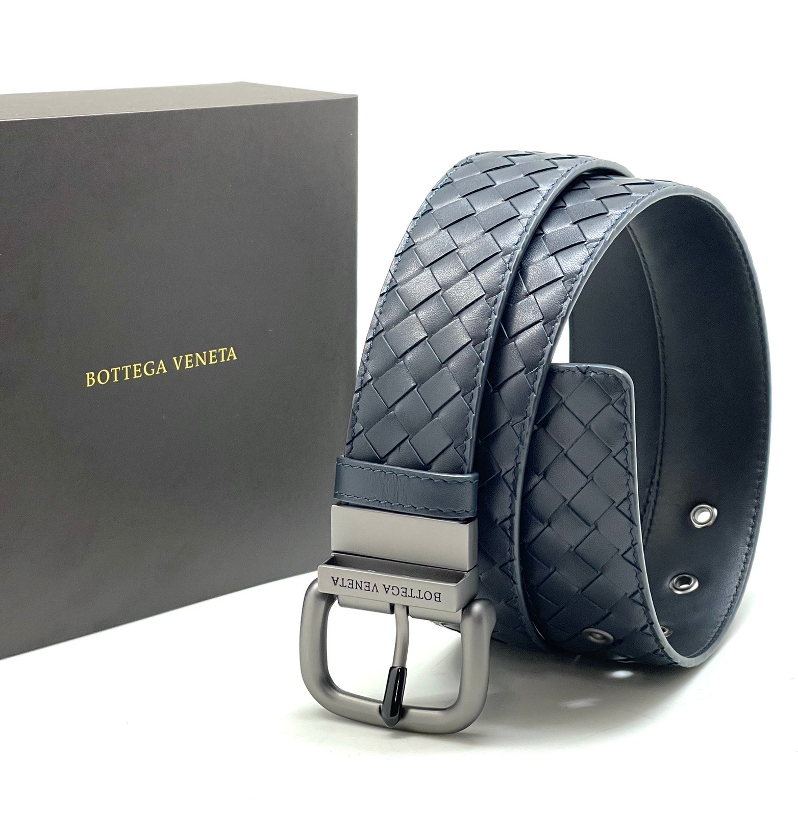 BV Ремень синий плетеный двухсторонний с надписью бренда на пряжке
