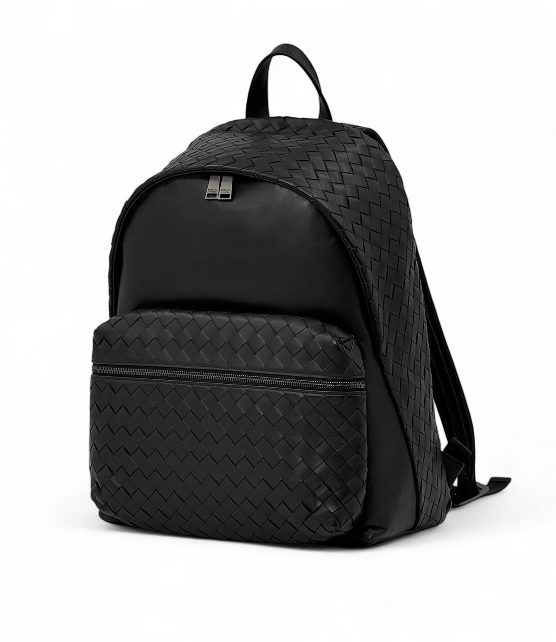 BV рюкзак крупное плетение и гладкая телячья кожа с переднем карманом на замке Большой