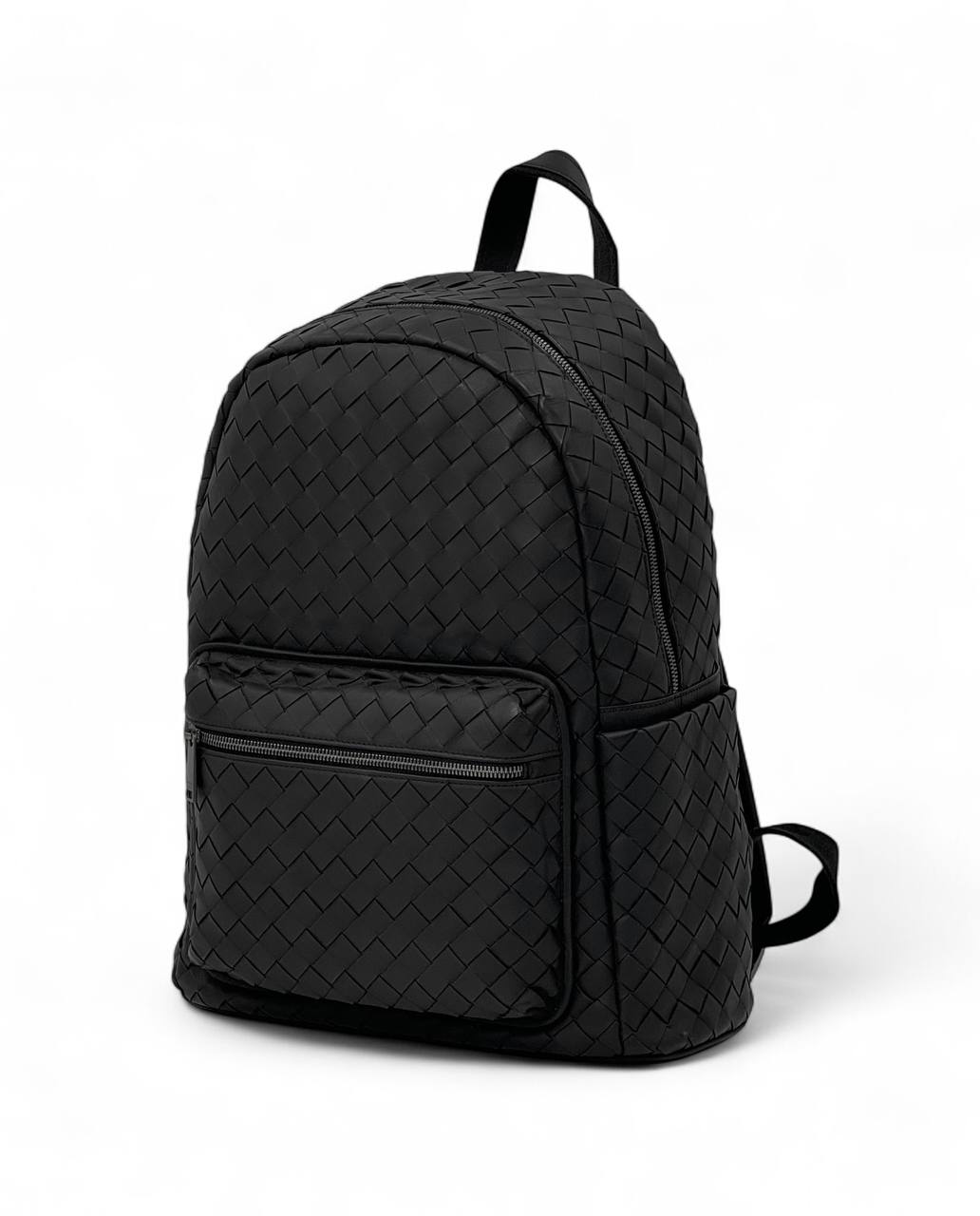 BV рюкзак крупное плетение из телячьей кожи черного цвета с боковыми карманами