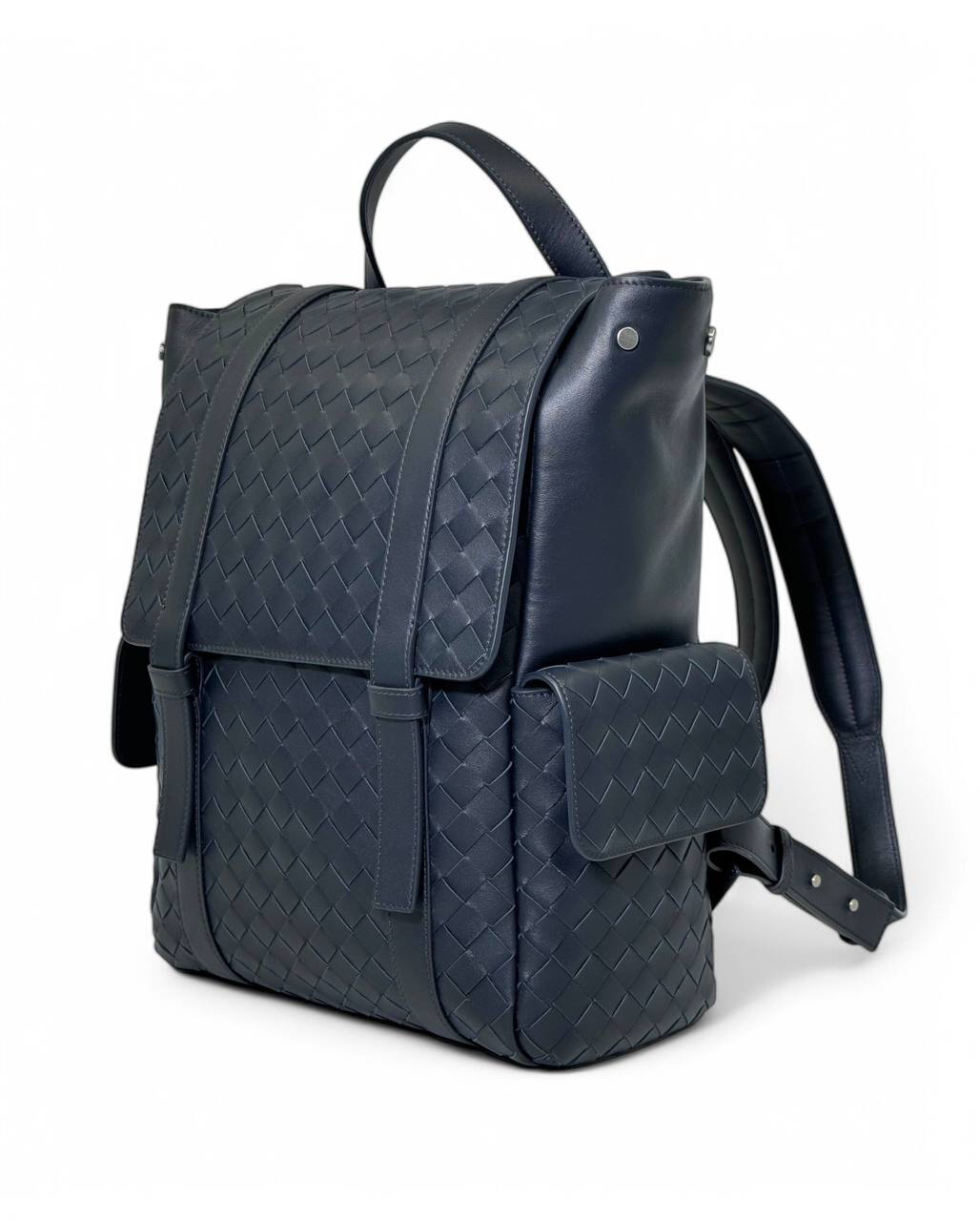 BV рюкзак теленок широкое плетение и гладкая кожа синий с клапаном