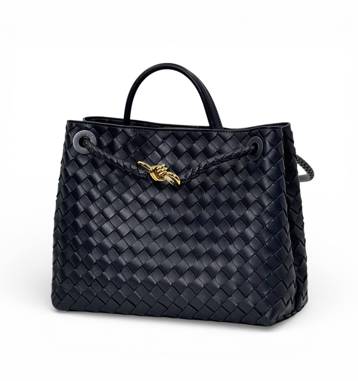 BV сумка Andiamo плетеная крупная клетка кожа темно-синяя большая
