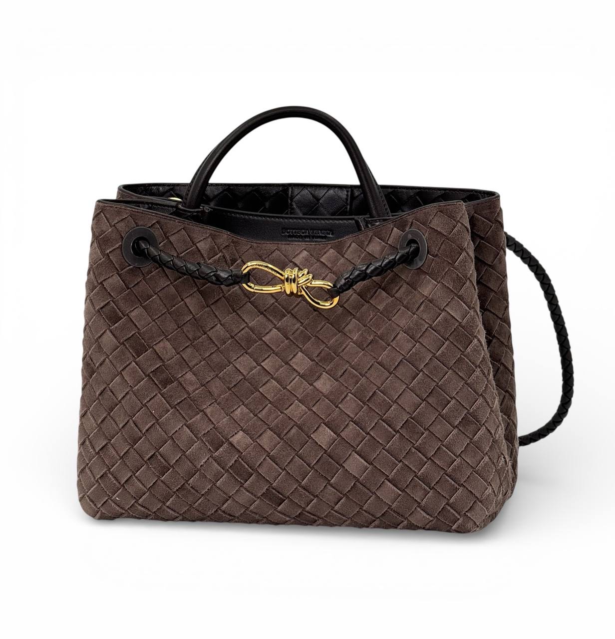 BV сумка Andiamo плетеная крупная клетка замша коричневая большая