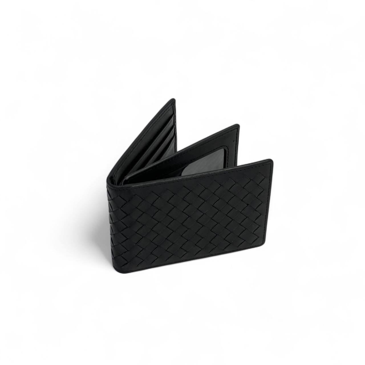 BV визитница 6 визиток серо-коричневая с зеленым вплетением ягненок крупное плетение