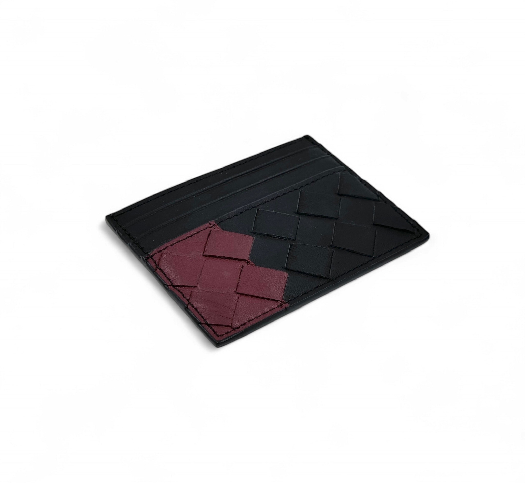BV визитница 6 визиток черная с красным вплетением ягненок крупное плетение