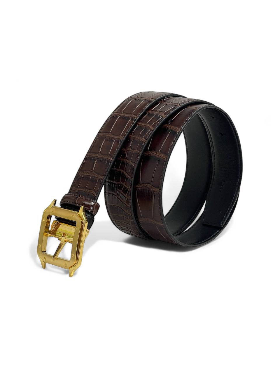 Cartier ремень коричневая кожа тисненная под крок квадратная пряжка золото