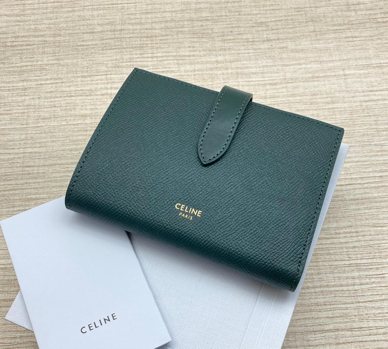 CELINE кошелек зернистая кожа хлястик на кнопке зеленый маленький