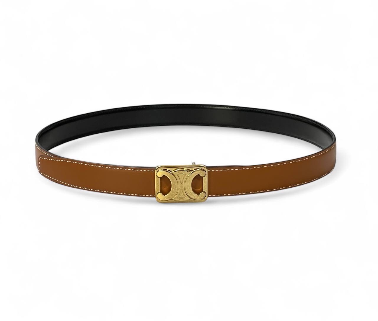 CELINE ремень двухсторонний гладкая кожа черно-коричневый пряжка золото