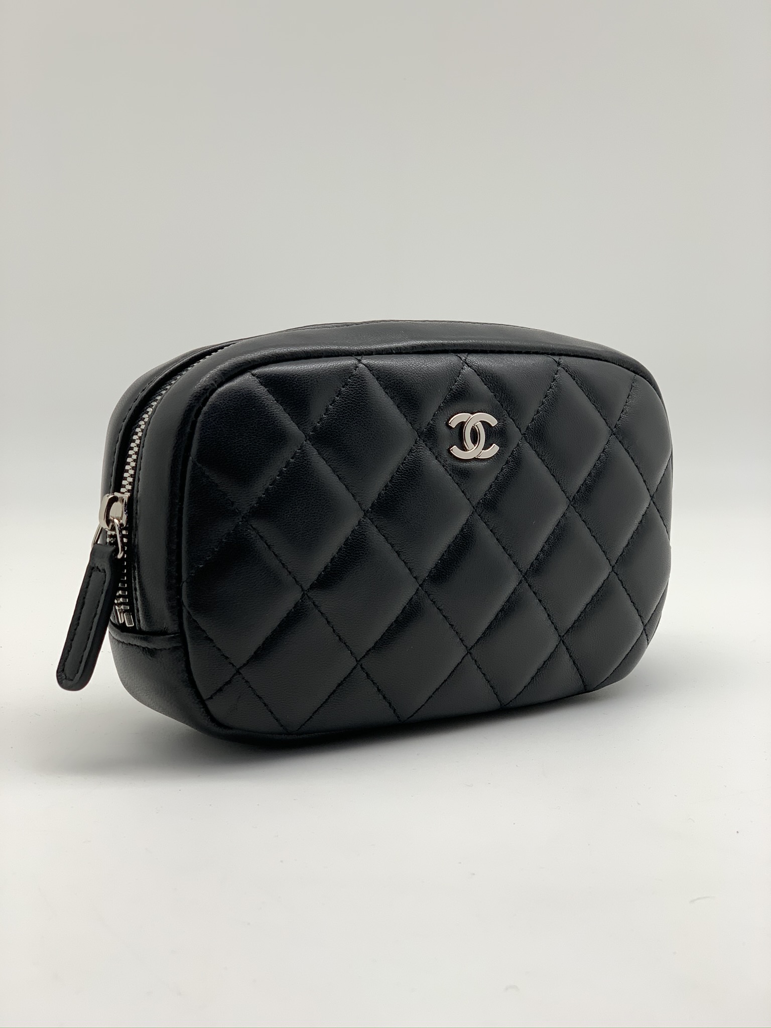 CHANEL клатч на молнии 17 см гладкая кожа в клетку черный фурнитура серебро