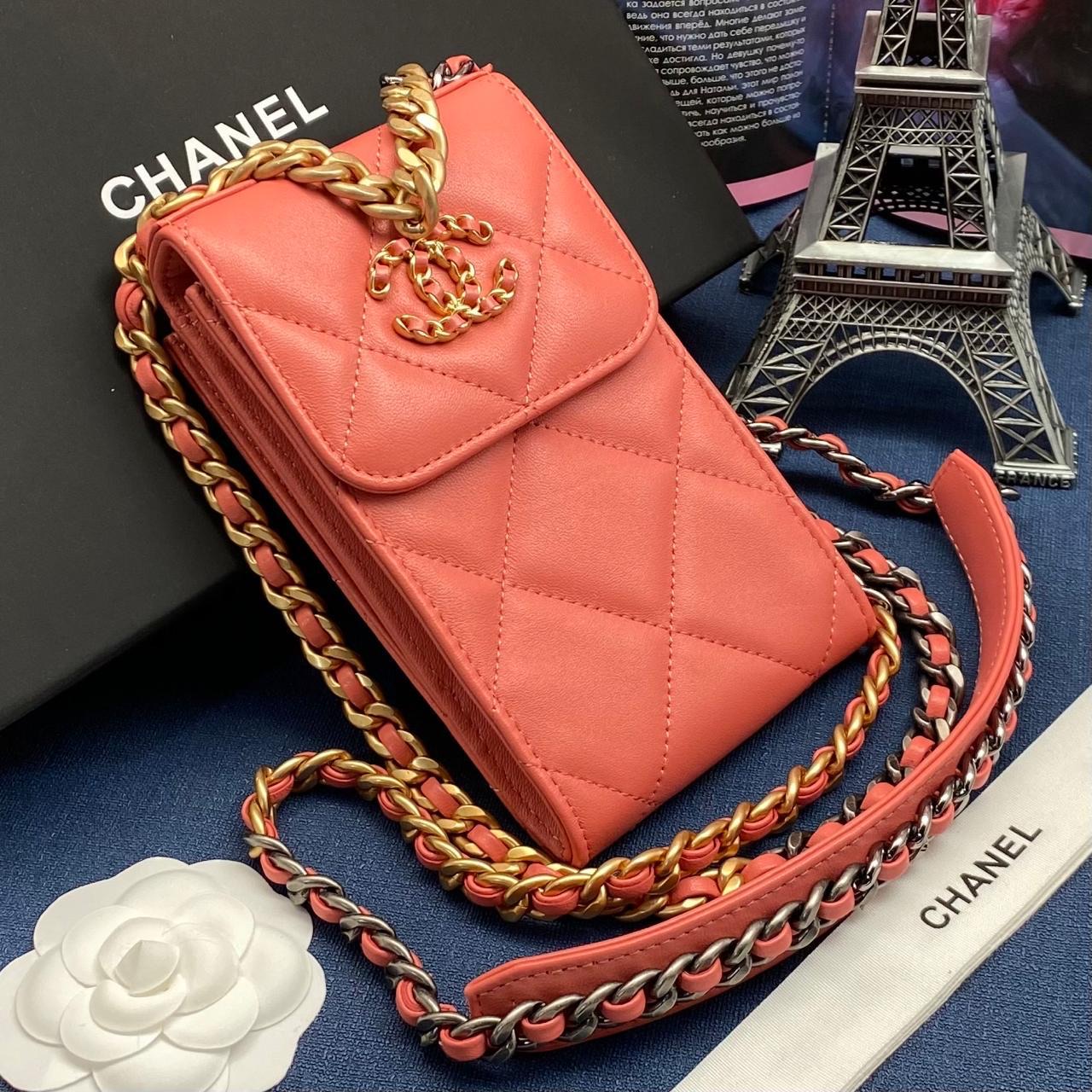 CHANEL мини-сумка чехол для телефона в клетку коралловая с клапаном