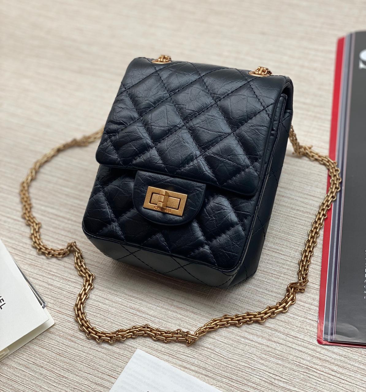 CHANEL мини-сумка с клапаном мятая кожа в клетку вертикальная черная