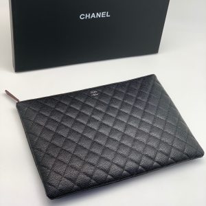 CHANEL папка на молнии кожа Caviar в клетку черная фурнитура серебро