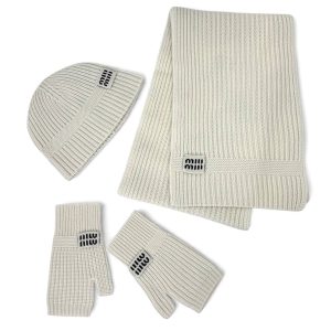 MIU MIU комплект шапка шарф и варежки вязаный белый