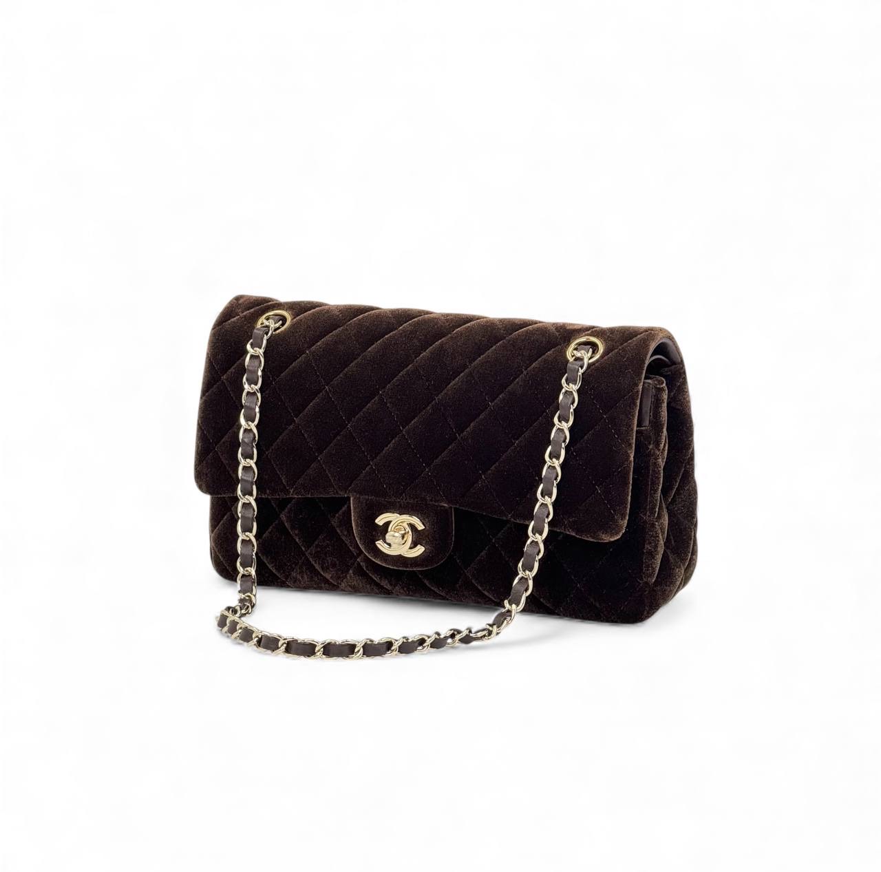 CHANEL сумка 2.55 бархат в клетку 25 см коричневый золото