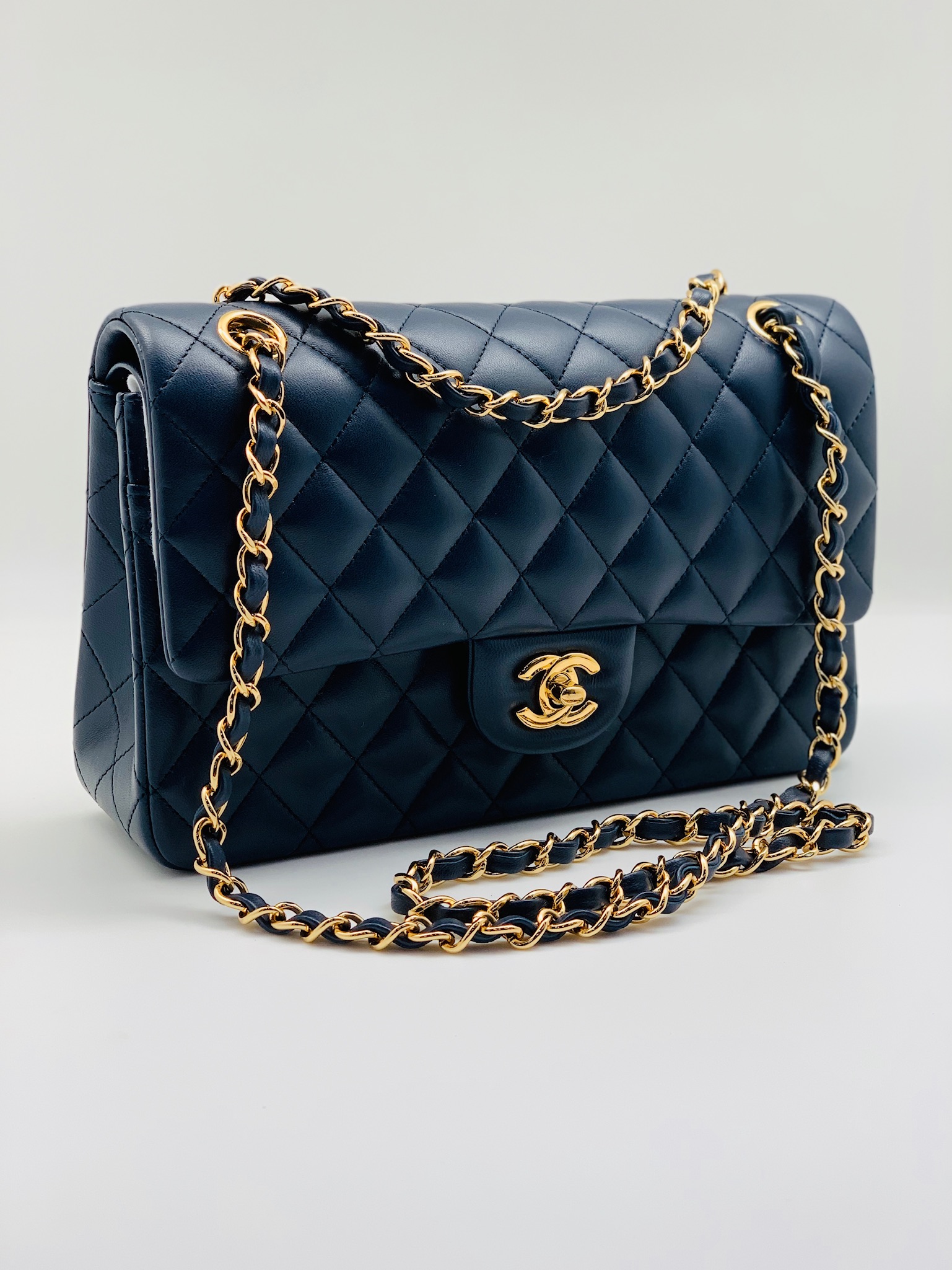 CHANEL сумка 2.55 гладкая кожа в клетку 25 см синяя фурнитура золото