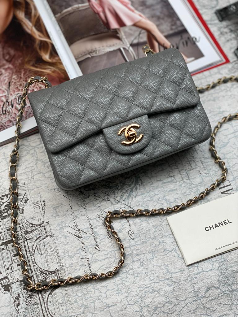 CHANEL сумка 2.55 кожа Caviar в клетку 20 см серая фурнитура золото