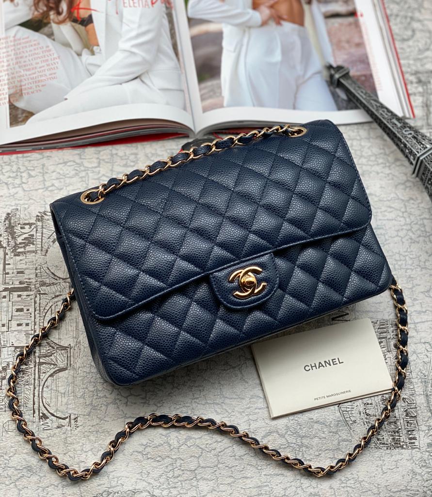 CHANEL сумка 2.55 кожа Caviar в клетку 25 см синяя фурнитура золото