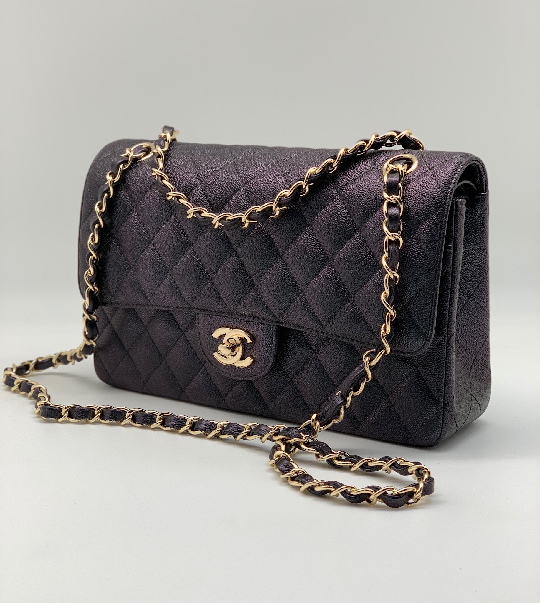 CHANEL сумка 2.55 кожа Caviar в клетку 25 см сиреневая фурнитура золото