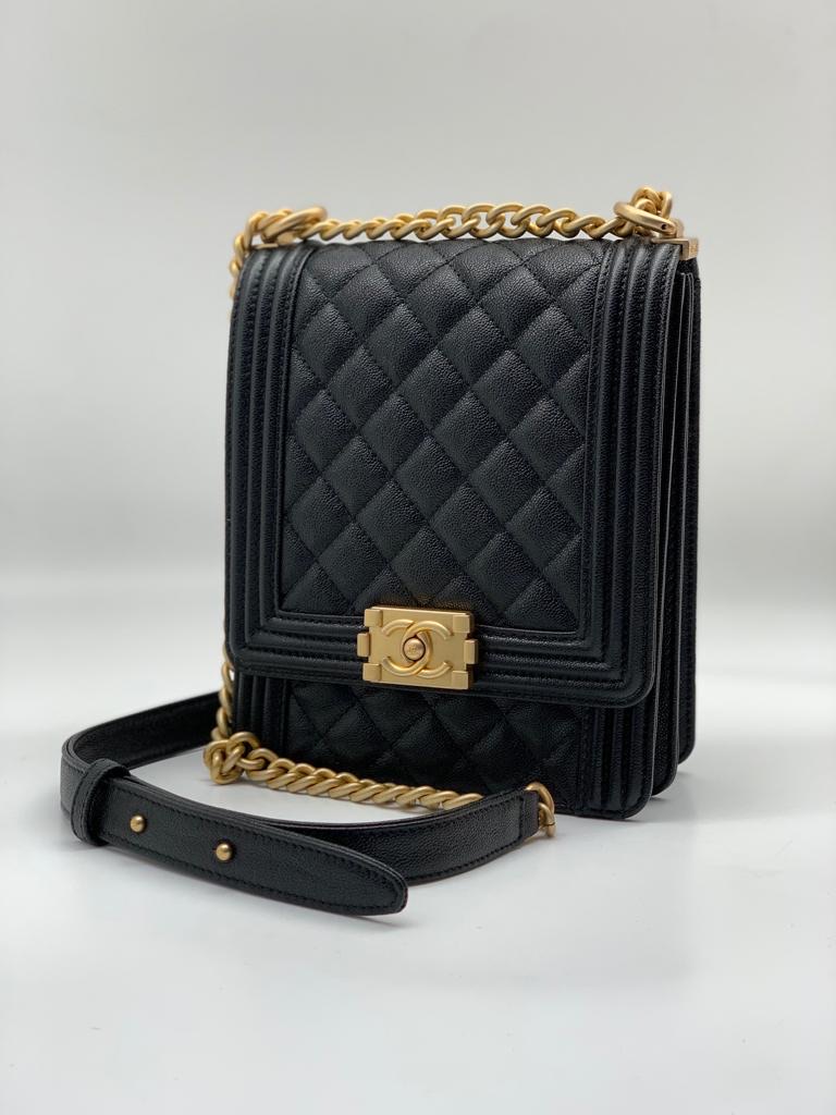 CHANEL сумка Boy кожа Caviar в клетку вертикальная черная