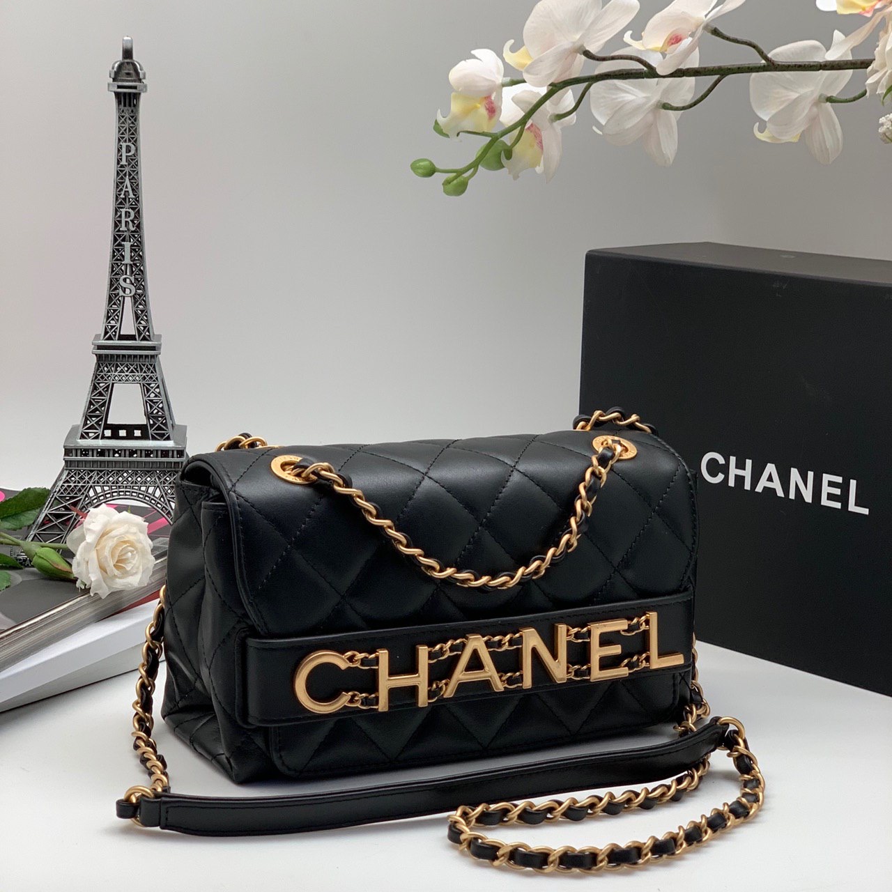 CHANEL сумка Camera 21 см гладкая кожа в клетку золотые буквы черная