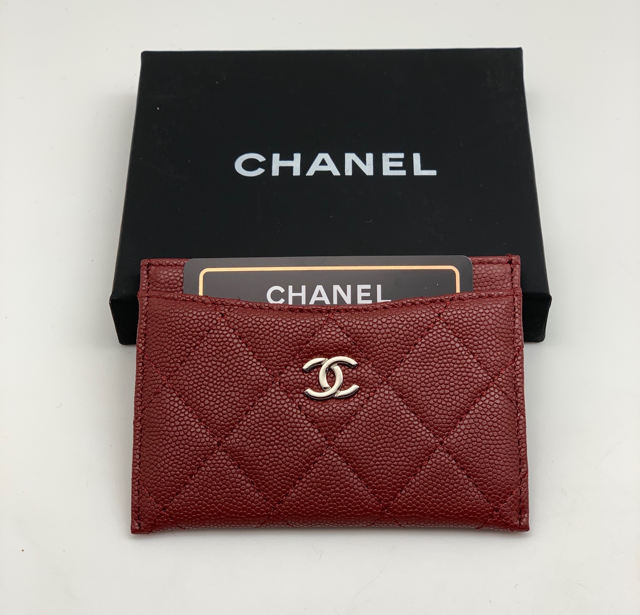 CHANEL визитница кожа Caviar в клетку красная фурнитура серебро
