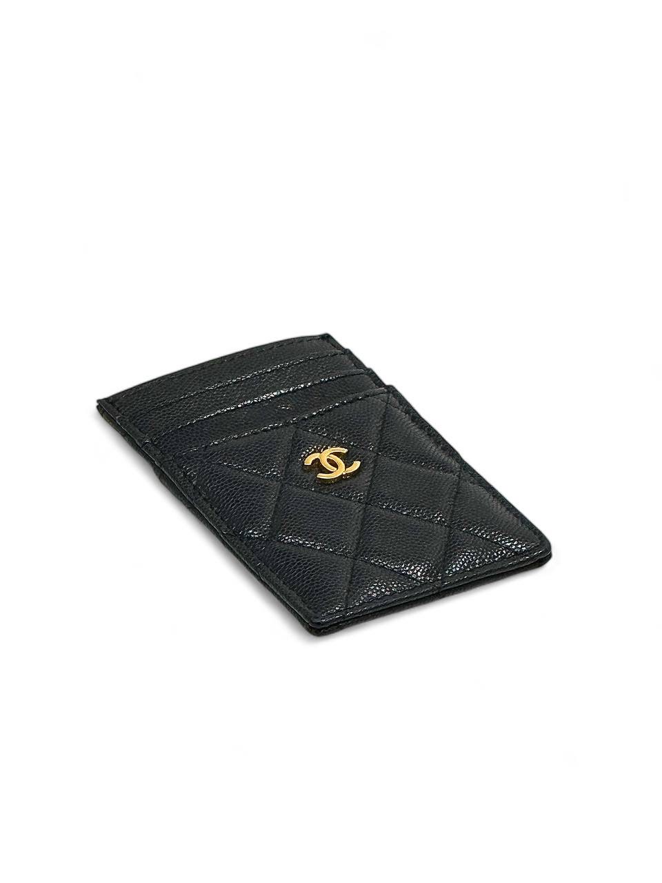 CHANEL визитница кожа Caviar в клетку 3 полоски бежевая фурнитура золото