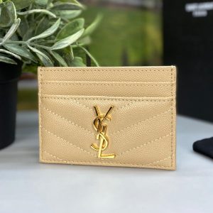 SL визитница 4 кармана бежевая кожа CAVIAR логотип YSL золото