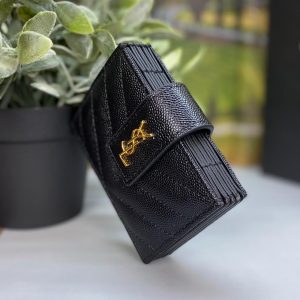 SL визитница 4 кармана черная кожа CAVIAR логотип YSL золото