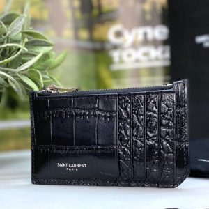 SL визитница маленькая на молнии черная тисненная кожа под крокодила