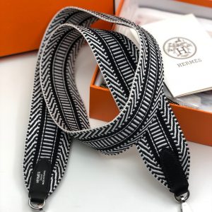HERMES ремень для сумки текстиль черный белая строчка фурнитура серебро