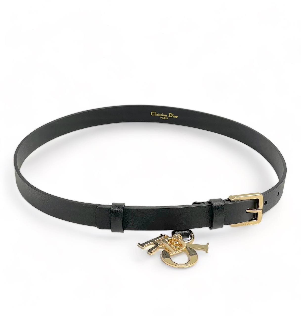 DIOR ремень черный узкий с золотой пряжкой D