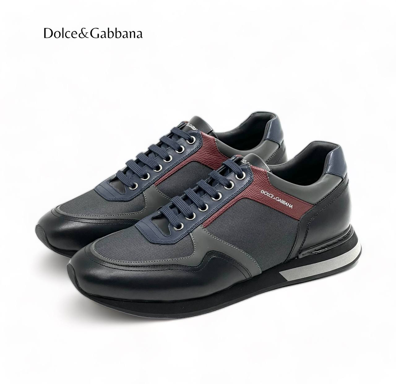 DOLCE&GABBANA кроссовки черно-серые бордовая полоса с сеткой