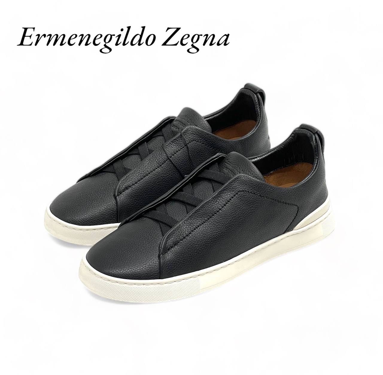 Ermenegildo Zegna кожаные кеды на резинках с белой подошвой